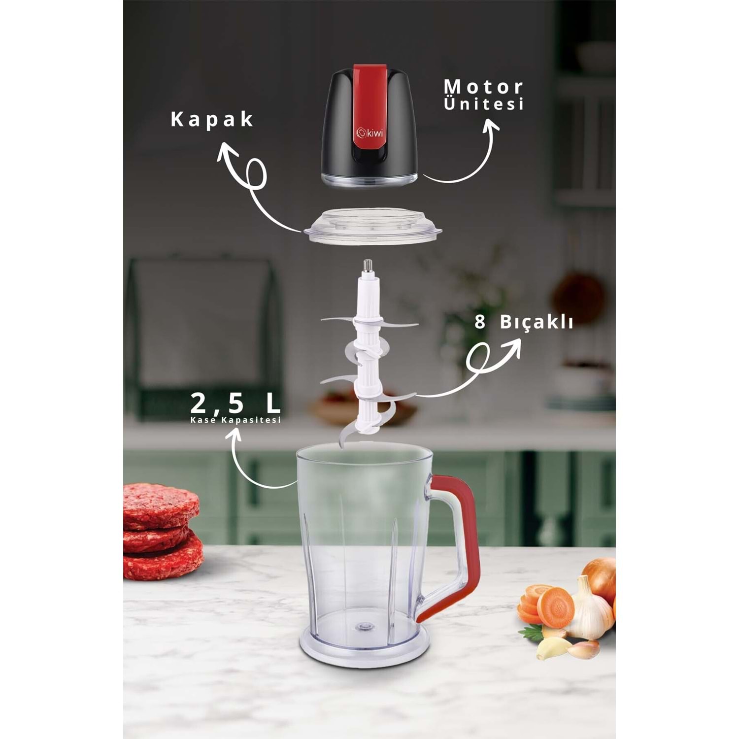 Kiwi KC-8244 8 Bıçaklı 2.5 Litrelik Gıda Doğrayıcı & Rondo