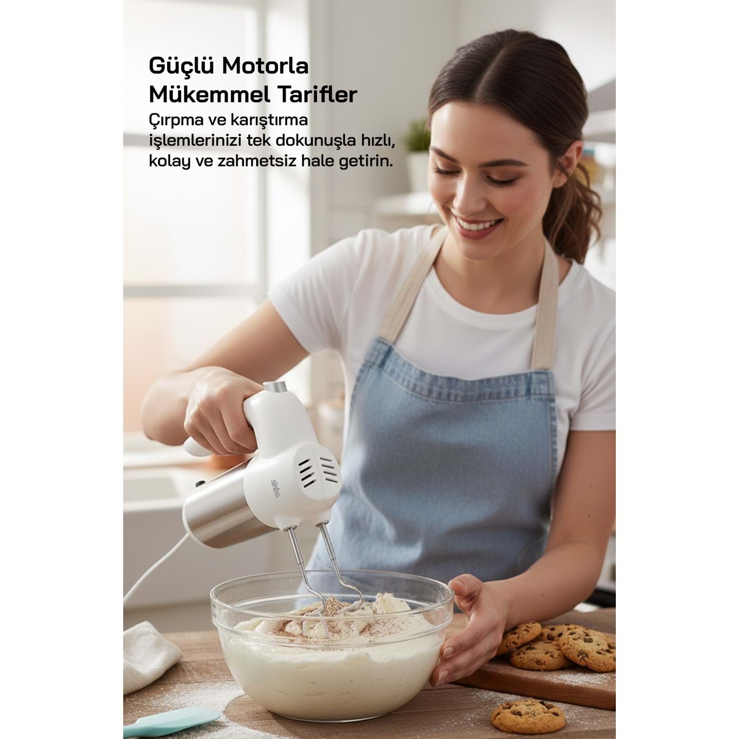 SMX-2774 El Mikseri, 5 kademeli hız ayarı sayesinde farklı tariflere uygun hız kontrolü sunar. Paslanmaz çelik çiftli çırpma ve karıştırma aparatları ile çırpma, karıştırma ve hafif yoğurma işlemlerini kolaylıkla yapabilirsiniz. Dayanıklı paslanmaz çelik gövdesi uzun ömürlü kullanım sağlarken, aksesuar çıkarma düğmesi aparatlar arasında hızlı ve pratik geçiş imkânı sunar. Ergonomik tasarımı sayesinde elde rahat kavranır ve mutfakta pratik bir yardımcı görevi görür.