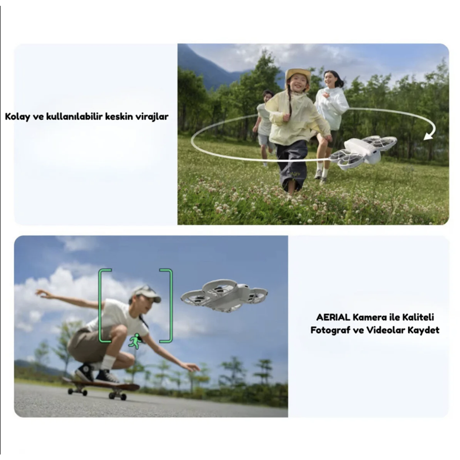 - Beni Takip Et Modu sayesinde drone'unuzu avucunuzda taşıyabilir ve hareketlerinizi takip ederek benzersiz perspektiflerden fotoğraf ve videolar çekebilirsiniz.