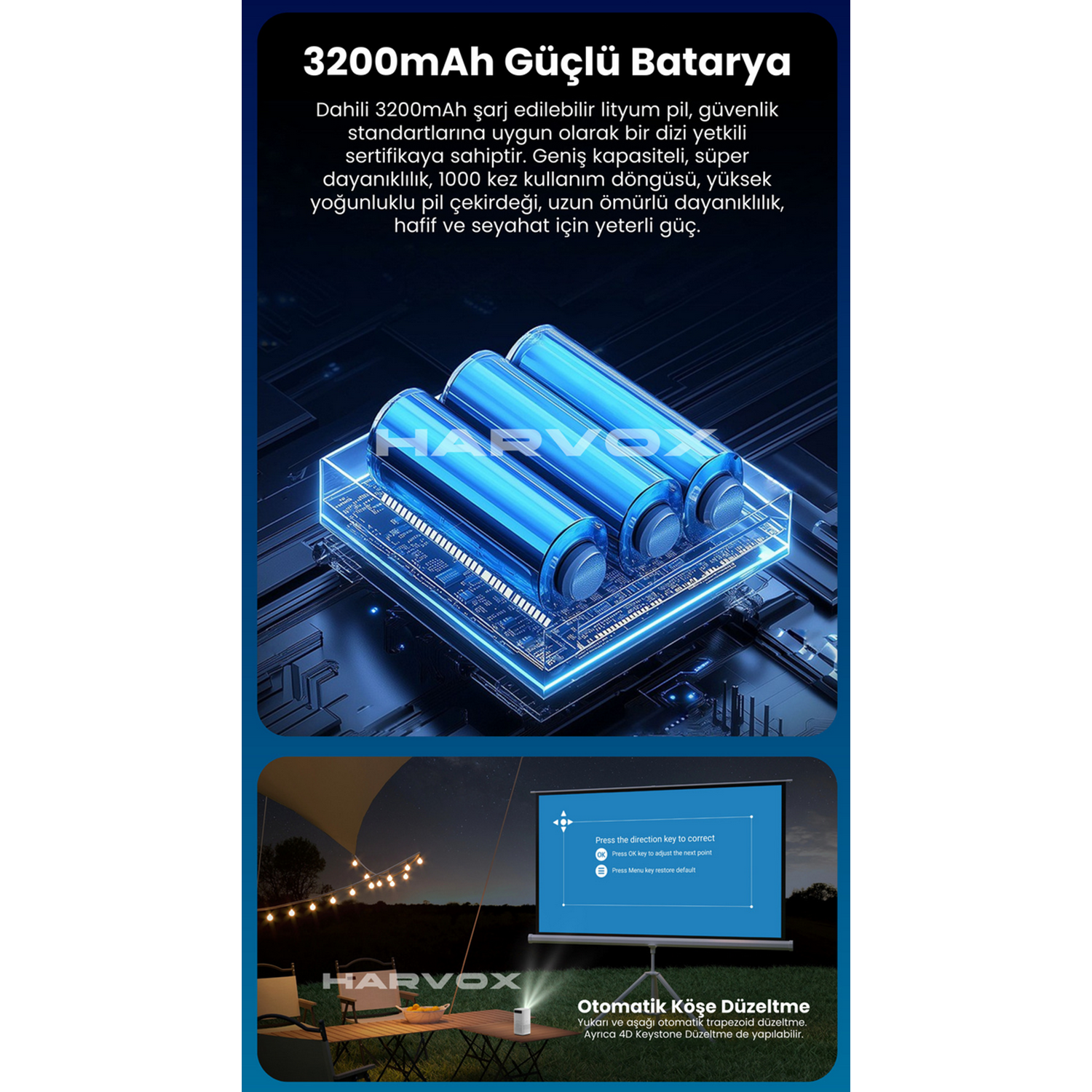 - 100 ANSI lümen parlaklık değeri, loş ortamlarda bile yeterli ışık seviyesini korur.