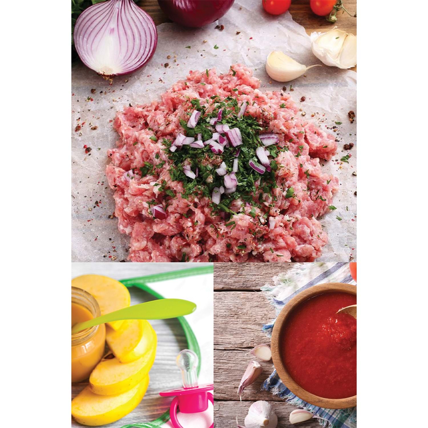 Sarımsak, soğan, havuç, sebze, kuruyemiş ve kemiksiz etgibi birçok gıdayı saniyeler içinde kolayca doğrar.