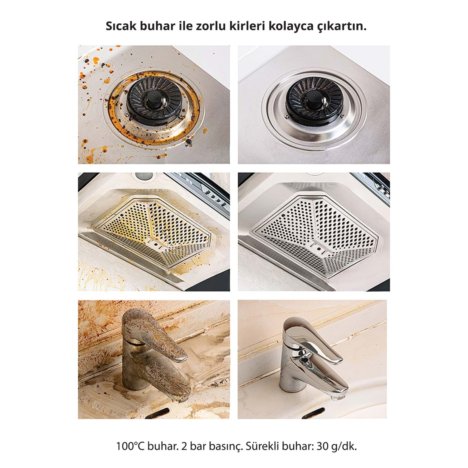 Fırın başlığı, banyo aparatı, çoklu uçlar ve daha fazlasıyla birlikte sunulur — fırın içlerinden lavabo kenarlarına, duş kabinlerinden araç jantlarına kadar birçok farklı alanda etkilidir.