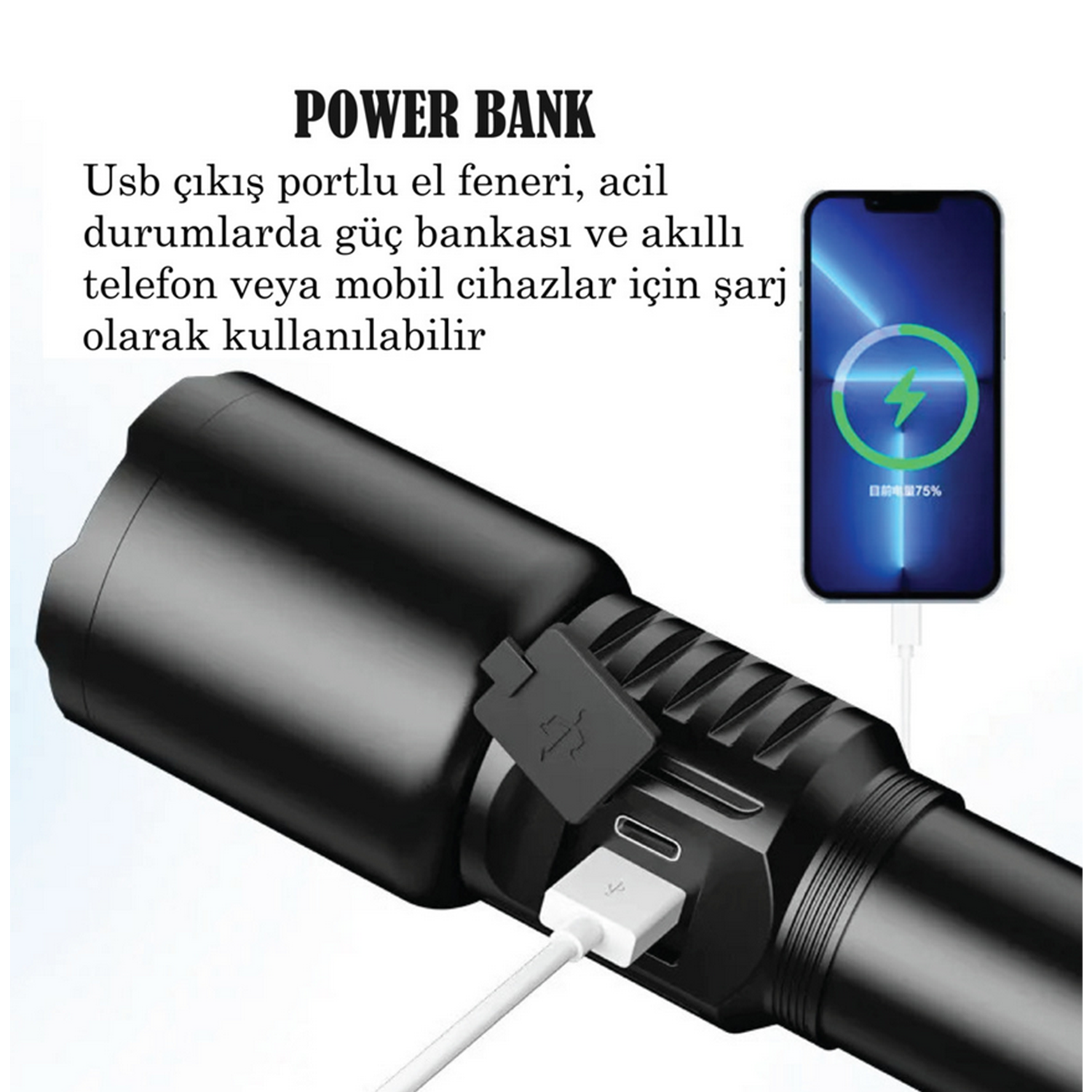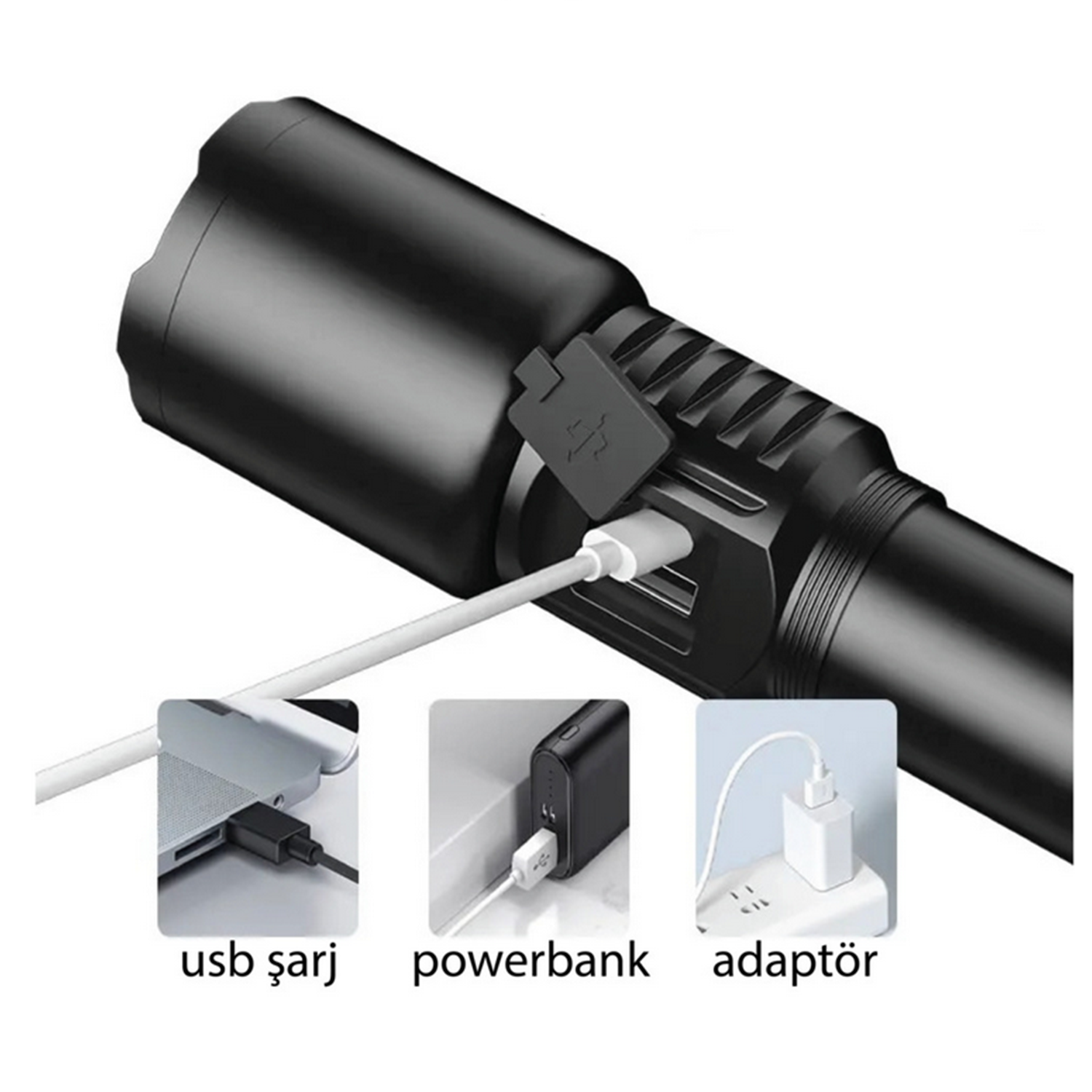 3 Modlu, güçlü, USB şarjlı ve zoom özelliği