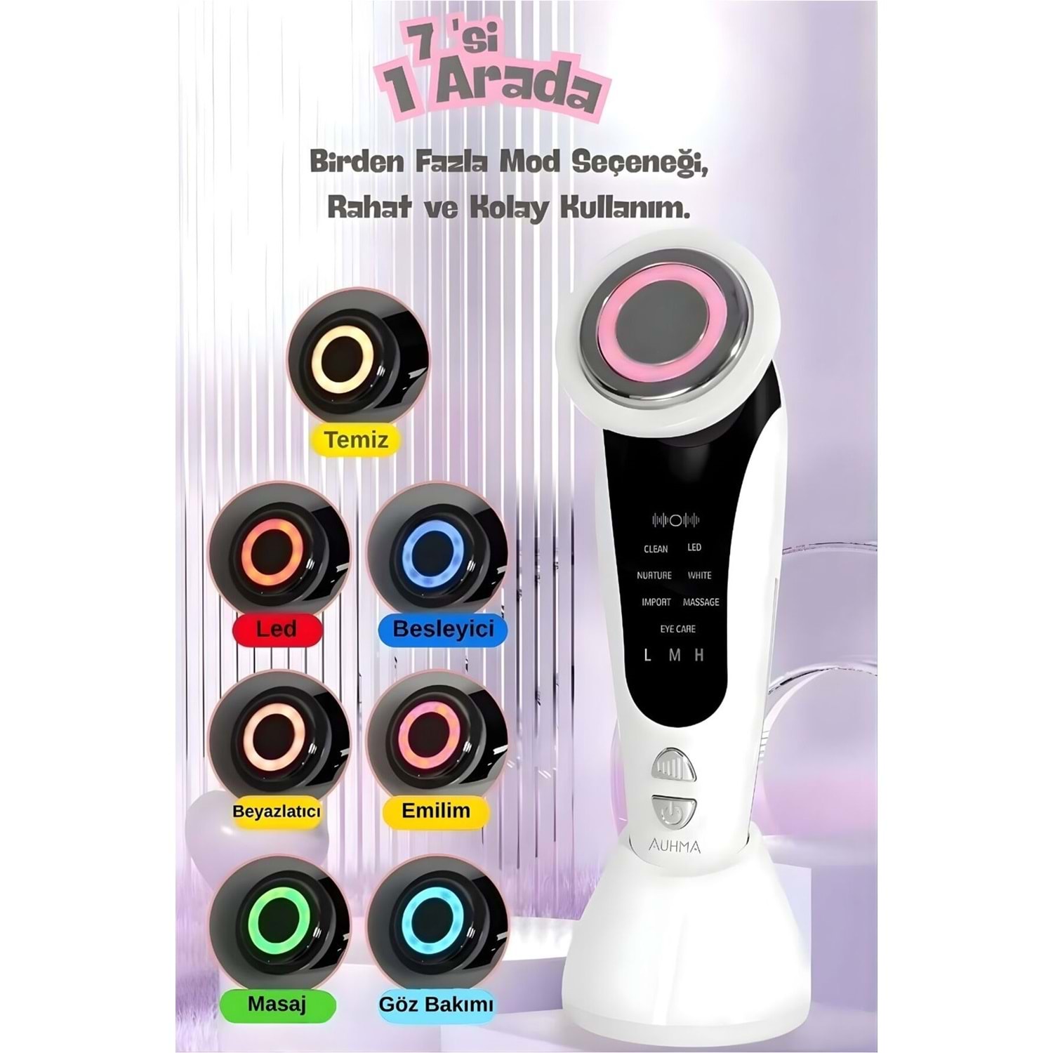 Çok Fonksiyonlu Kullanım: Yüz kaldırma, masaj, cilt aydınlatma, siyah nokta temizleme ve sıkılaştırma dahil 7 farklı bakım modu sunar.