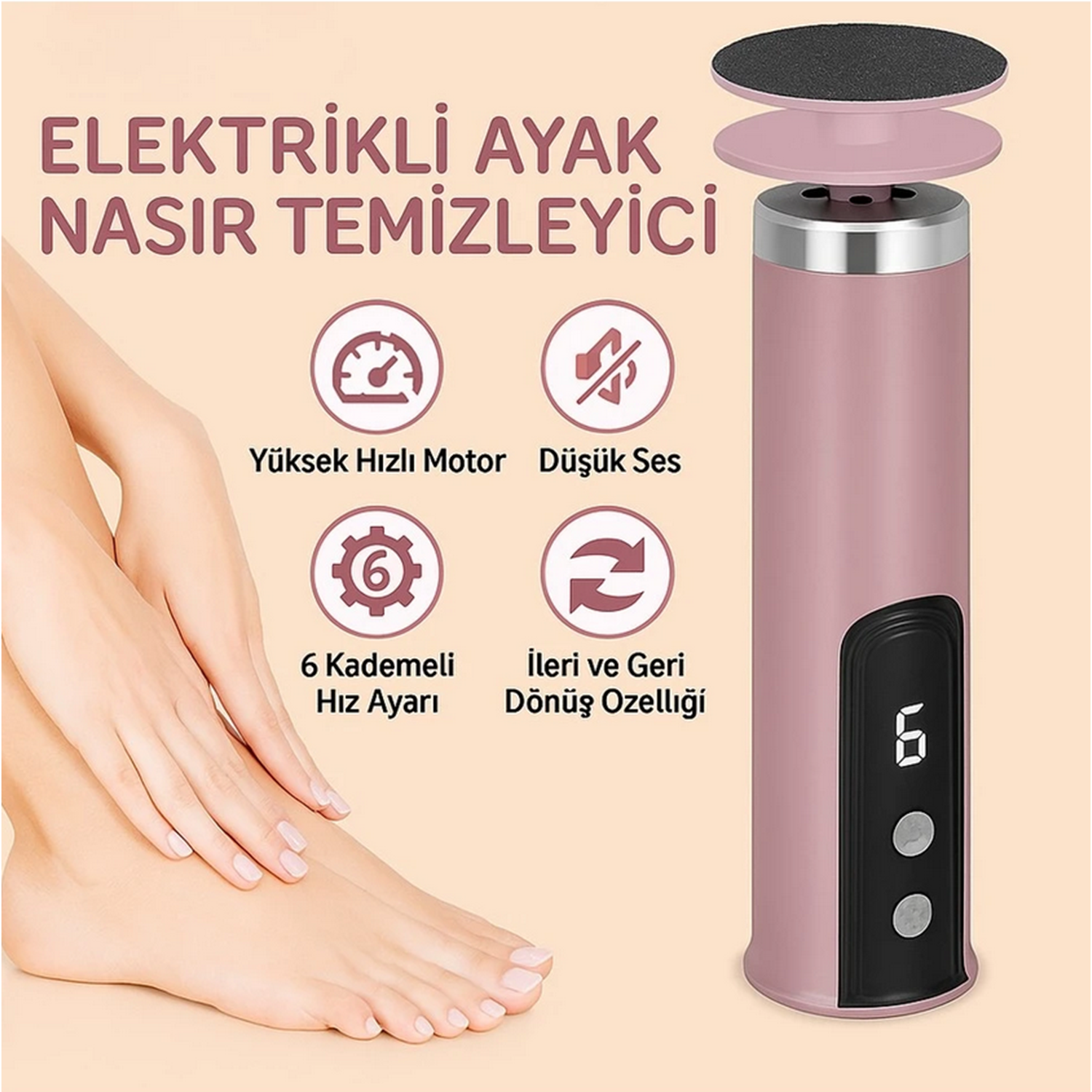 6 Kademeli Elektrikli Ayak Nasır Temizleyici Topuk Törpüsü – Şarjlı, Düşük Sesli, Ileri Geri Dönüşlü Profesyonel Bakım Cihazı