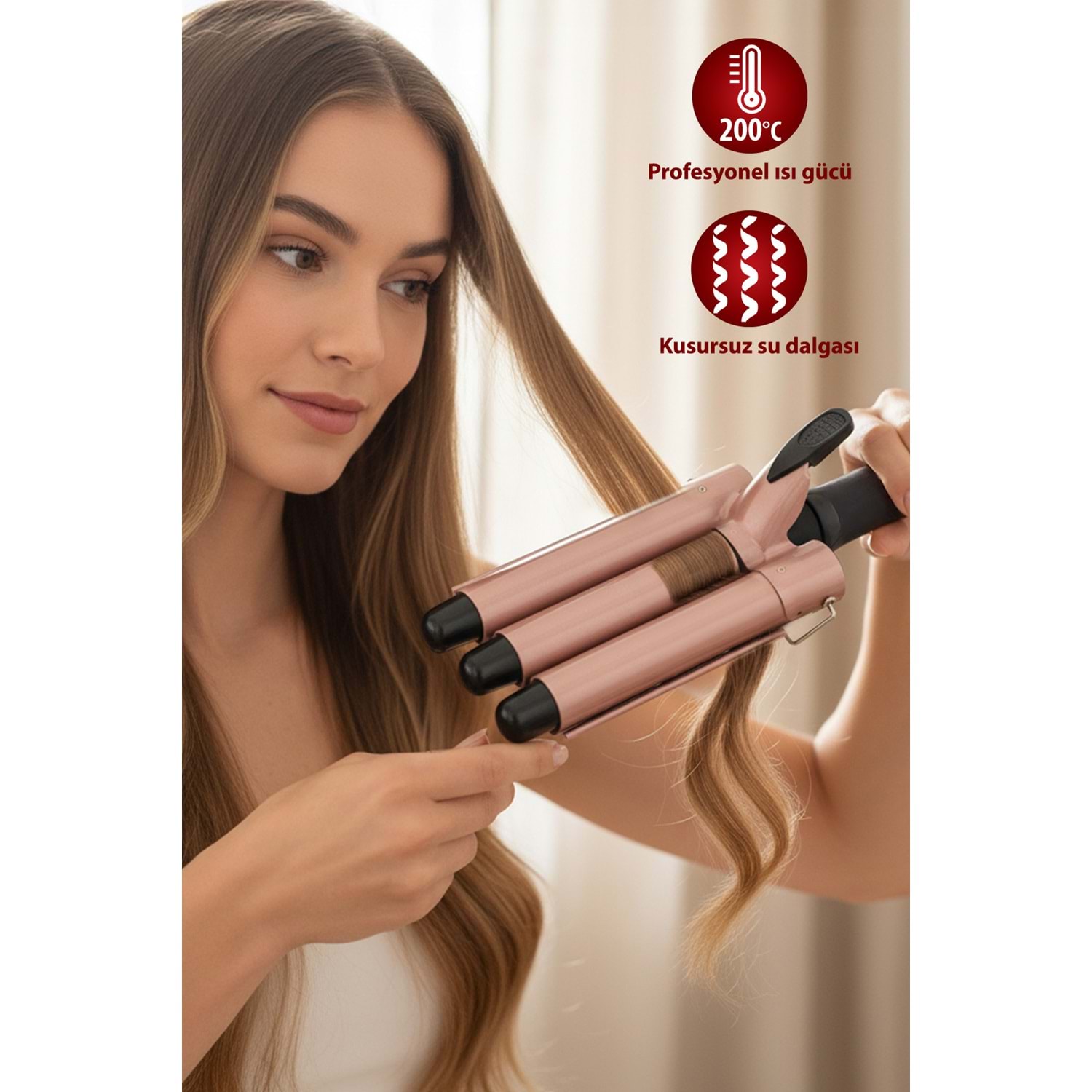 Kalın maşa üçlü tasarımı sayesinde aynı anda 3 farklı bukle oluşturmanıza yardımcı olur.