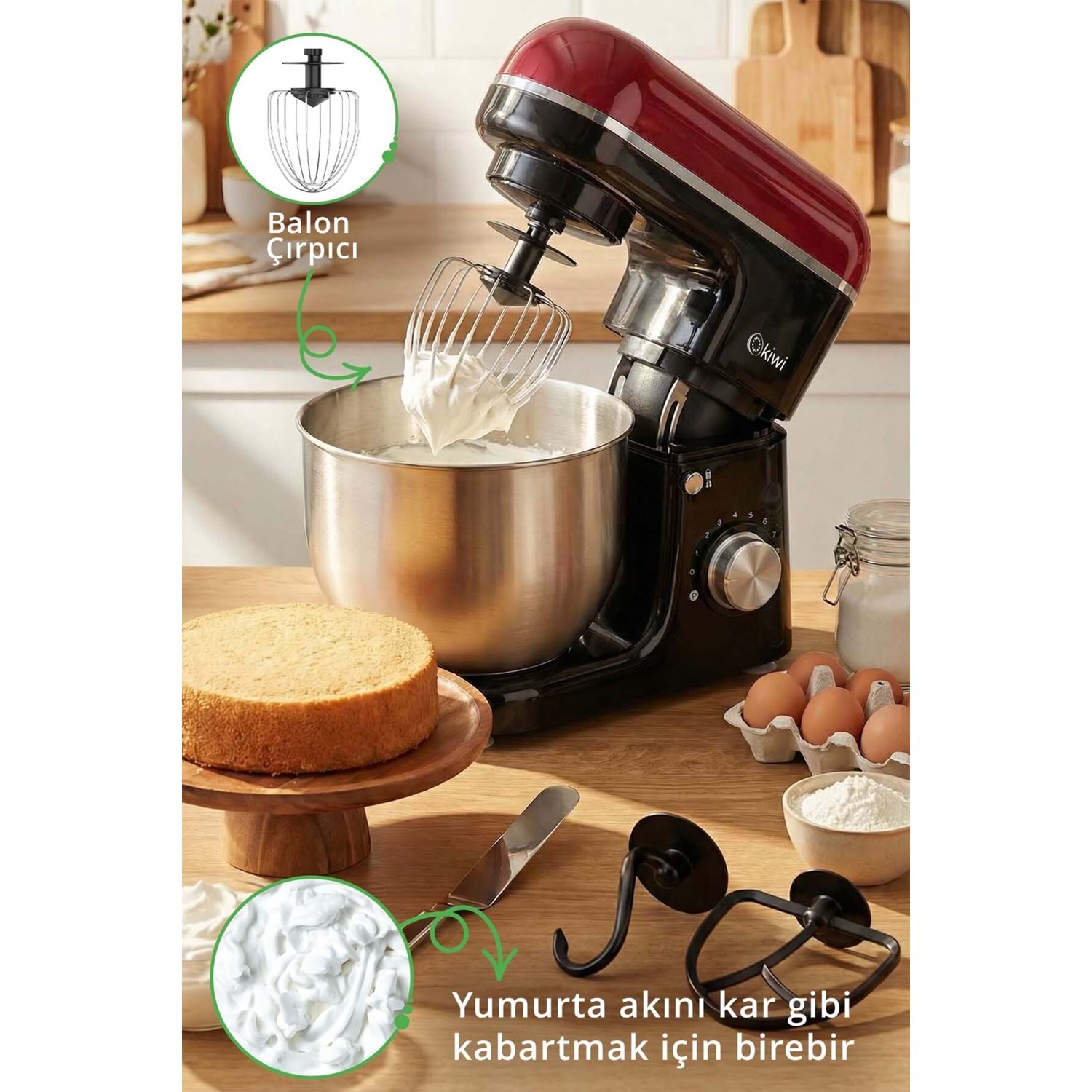 3 Farklı Başlık: Hamur kancası, çırpma teli ve düz çırpıcı