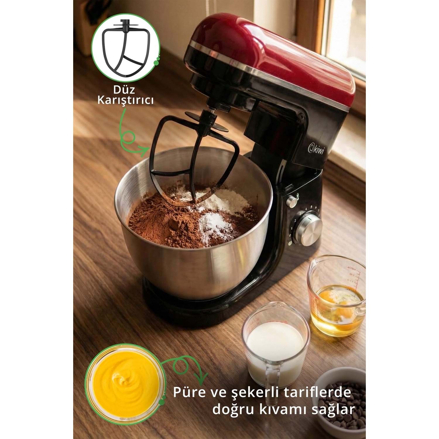 Bu çok yönlü standlı mikser , yüksek performanslı motoru ve geniş kapasiteli çelik haznesiyle mutfağınızda profesyonel bir şef etkisi yaratır.