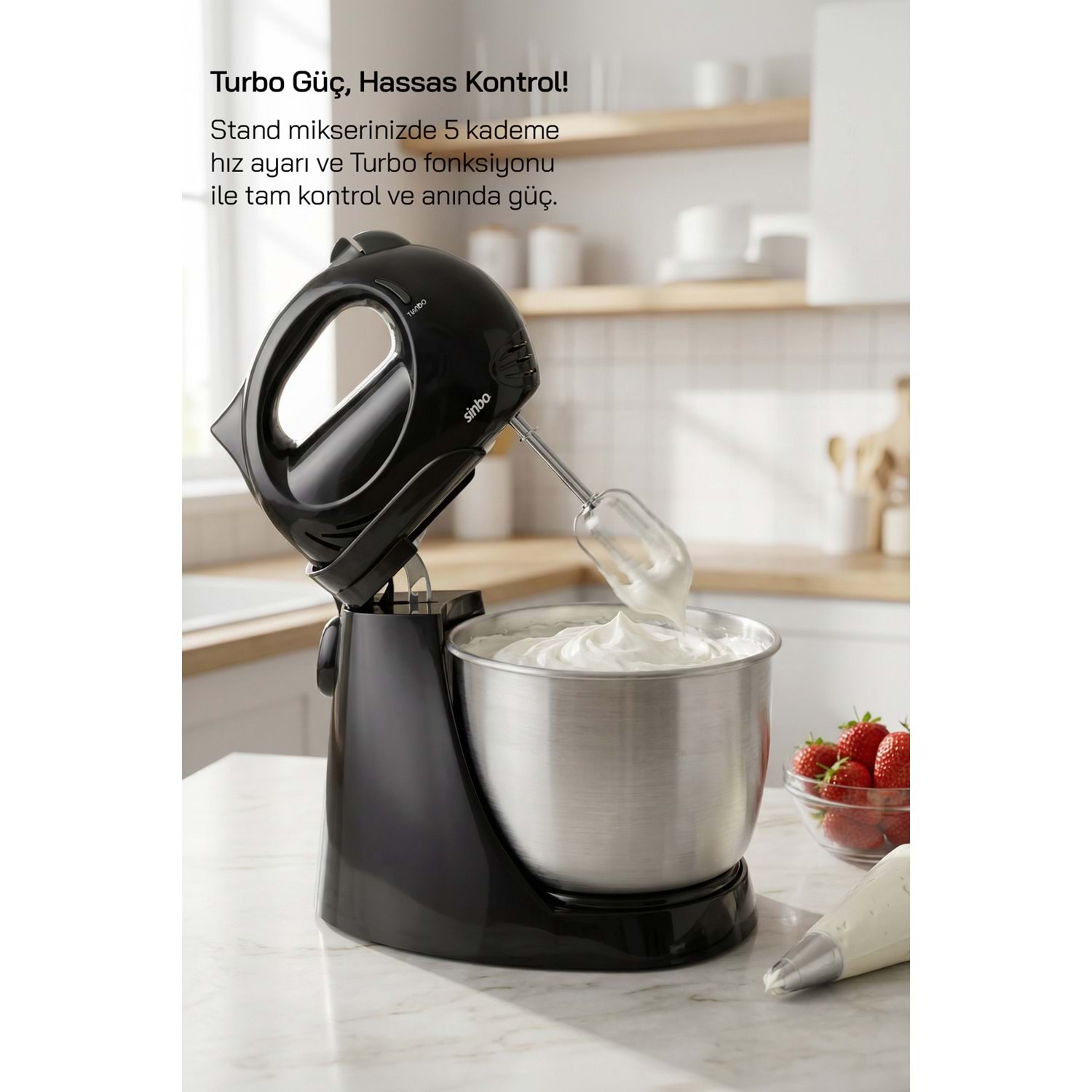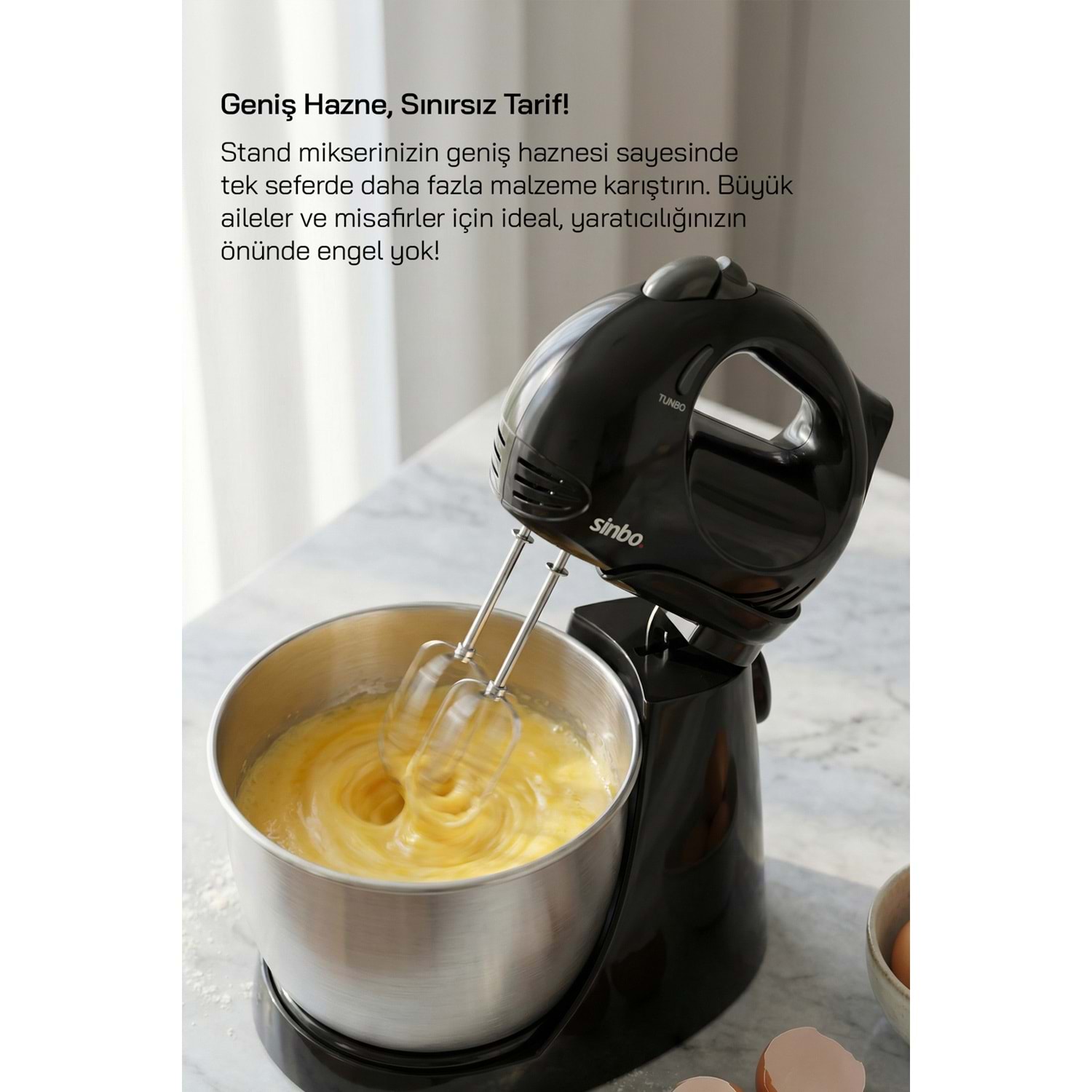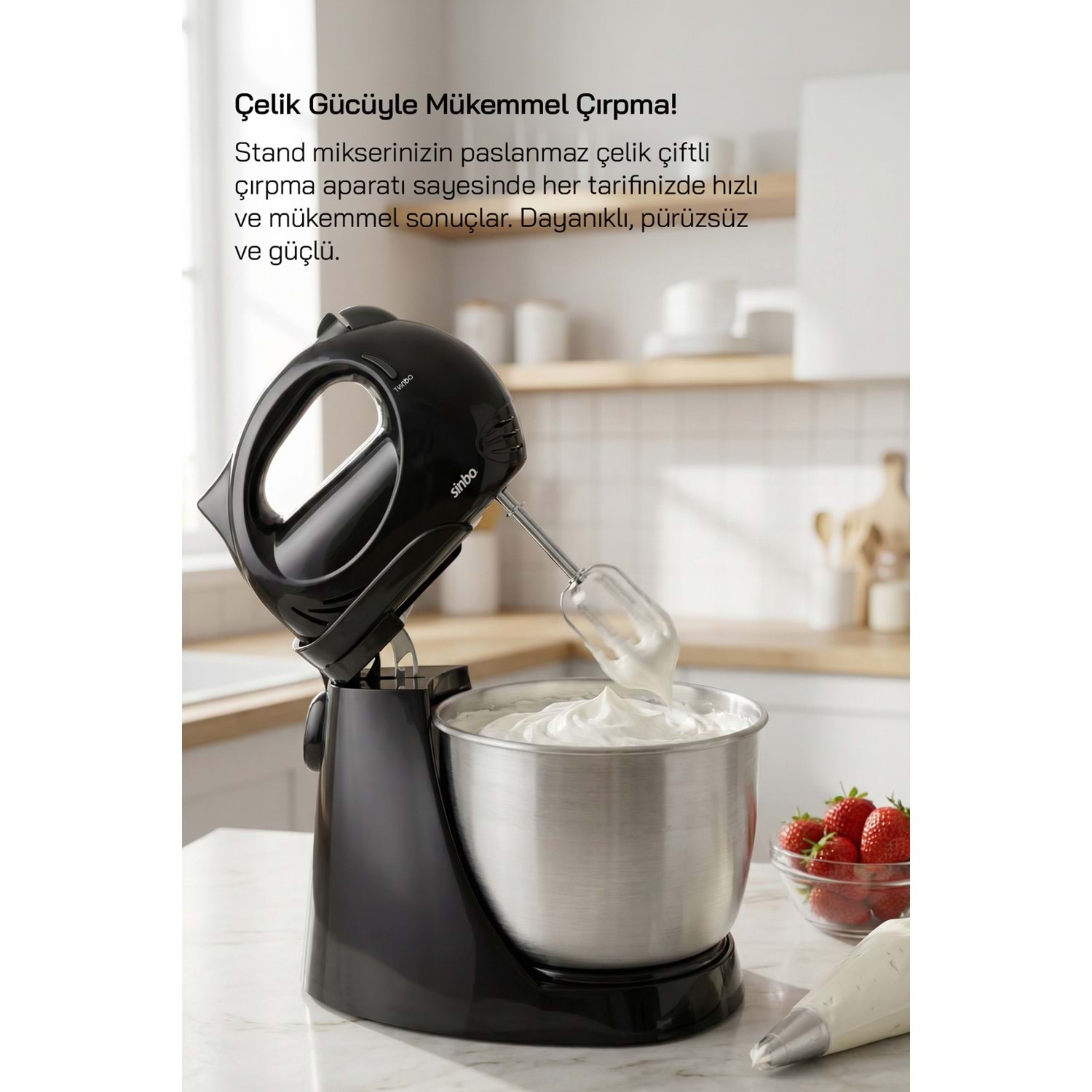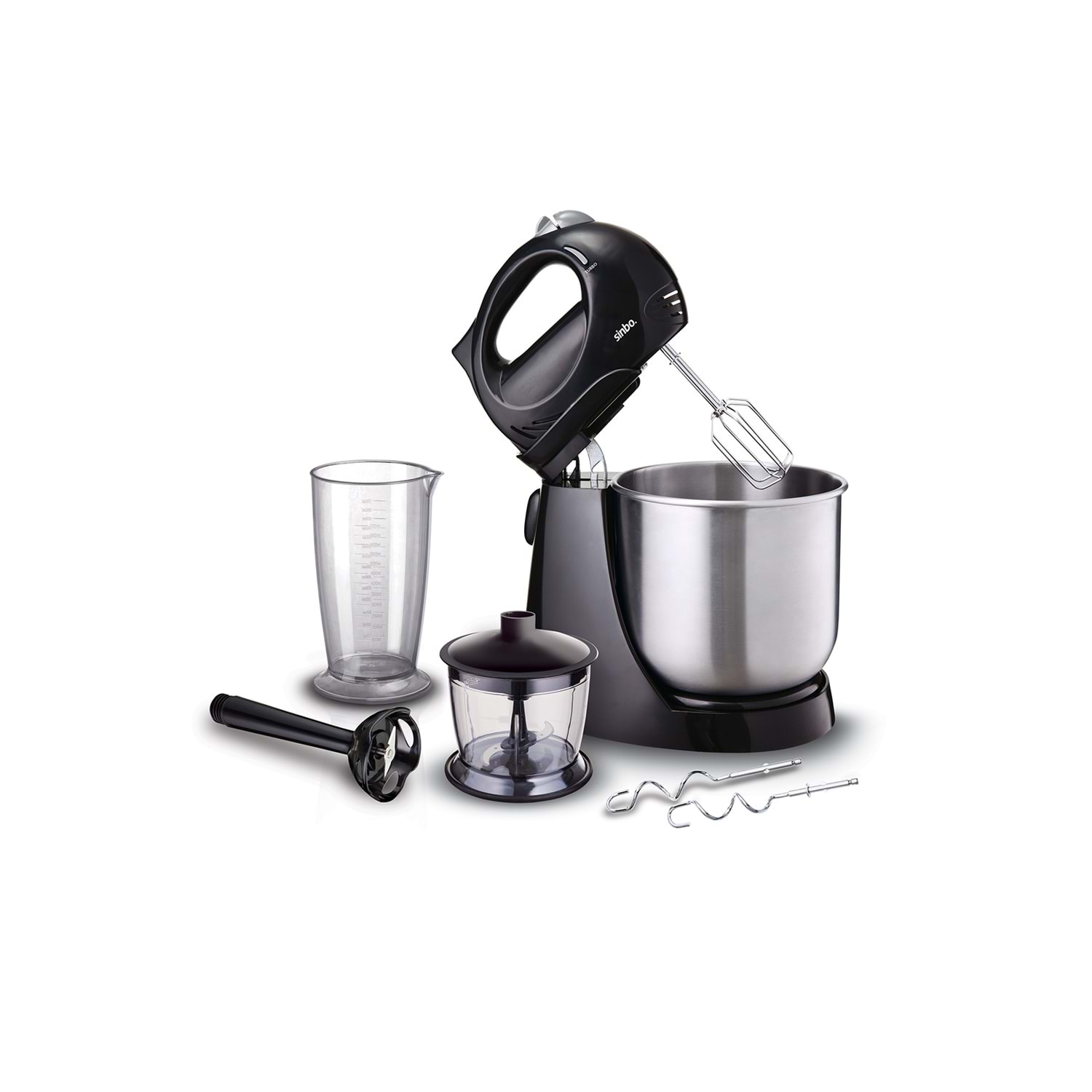 Sinbo SMX 2731 300 W Stand Mikser Ürün Özellikleri • 4 fonksiyon 1 arada (blender, doğrayıcı, mixer ve hamur yoğurucu) • Turbo fonksiyonu ve 5 kademe hız ayarı • Paslanmaz çelik geniş hamur yoğurma kasesi • 600 ml bulaşık makinesinde yıkanabilir doğrayıcı haznesi • 700 ml bulaşık makinesinde yıkanabilir ölçü kabı • Paslanmaz çelik blender bıçağı • Paslanmaz çelik çiftli çırpma aparatı • Paslanmaz çelik çiftli hamur yoğurma aparatı • Aksesuar çıkartma düğmesi • Emniyet sistemi • 300 W