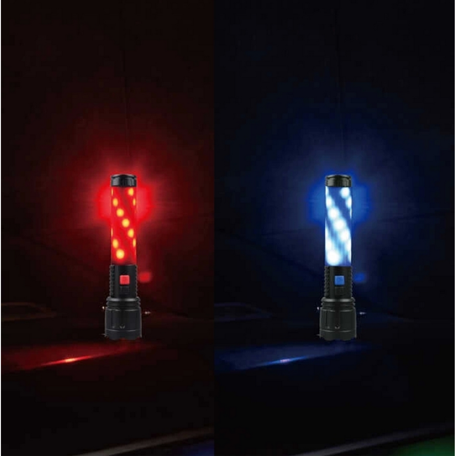 beyaz, kırmızı, mavi ve son olarak kırmızı-mavi flaşör modlarında çalışır.